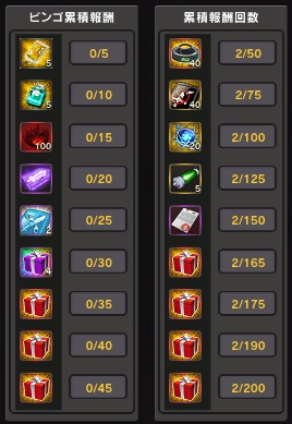■ ビンゴプレイ回数に応じた報酬アイテム